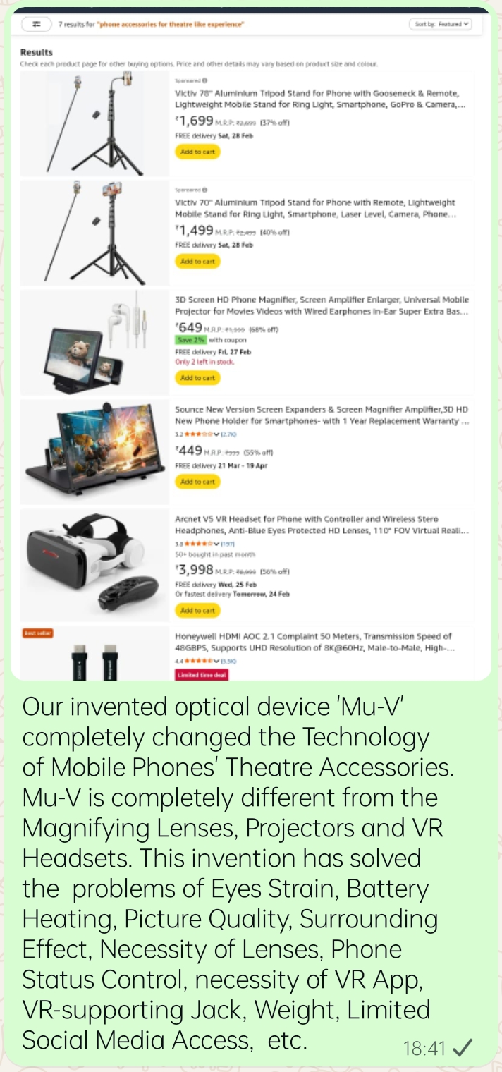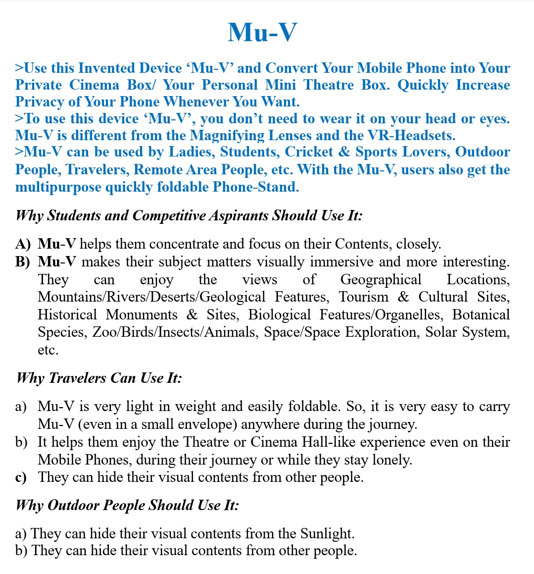 Mu-V (This Invention Makes Your Phone A Personal Mini Theatre Box/ Travelers' Private Box)