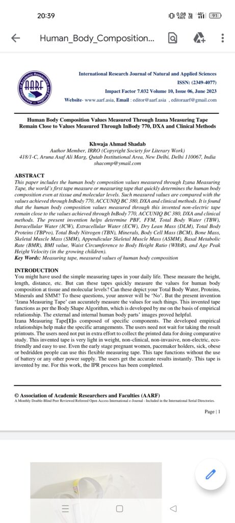 This is the world’s first measuring tape, which shows the values of Total Body Water, Skeletal Muscle Mass, Total Body Protein, etc. This invented tape has the potential to make you Health Conscious. It is good to see a thing, which promotes the healthcare activities.
