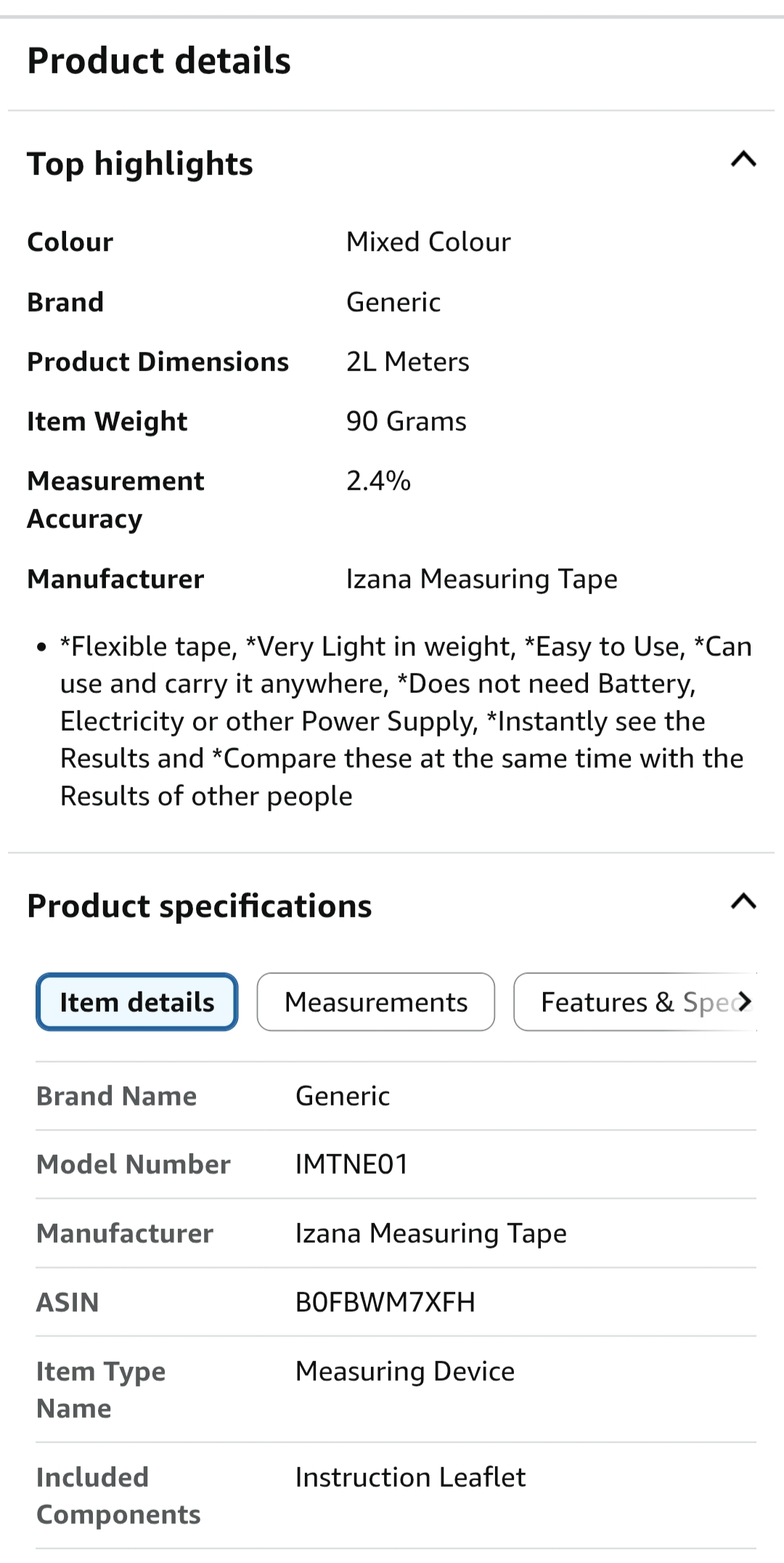 Price of Izana Measuring Tape (In India, INR 349; Abroad, $05)
