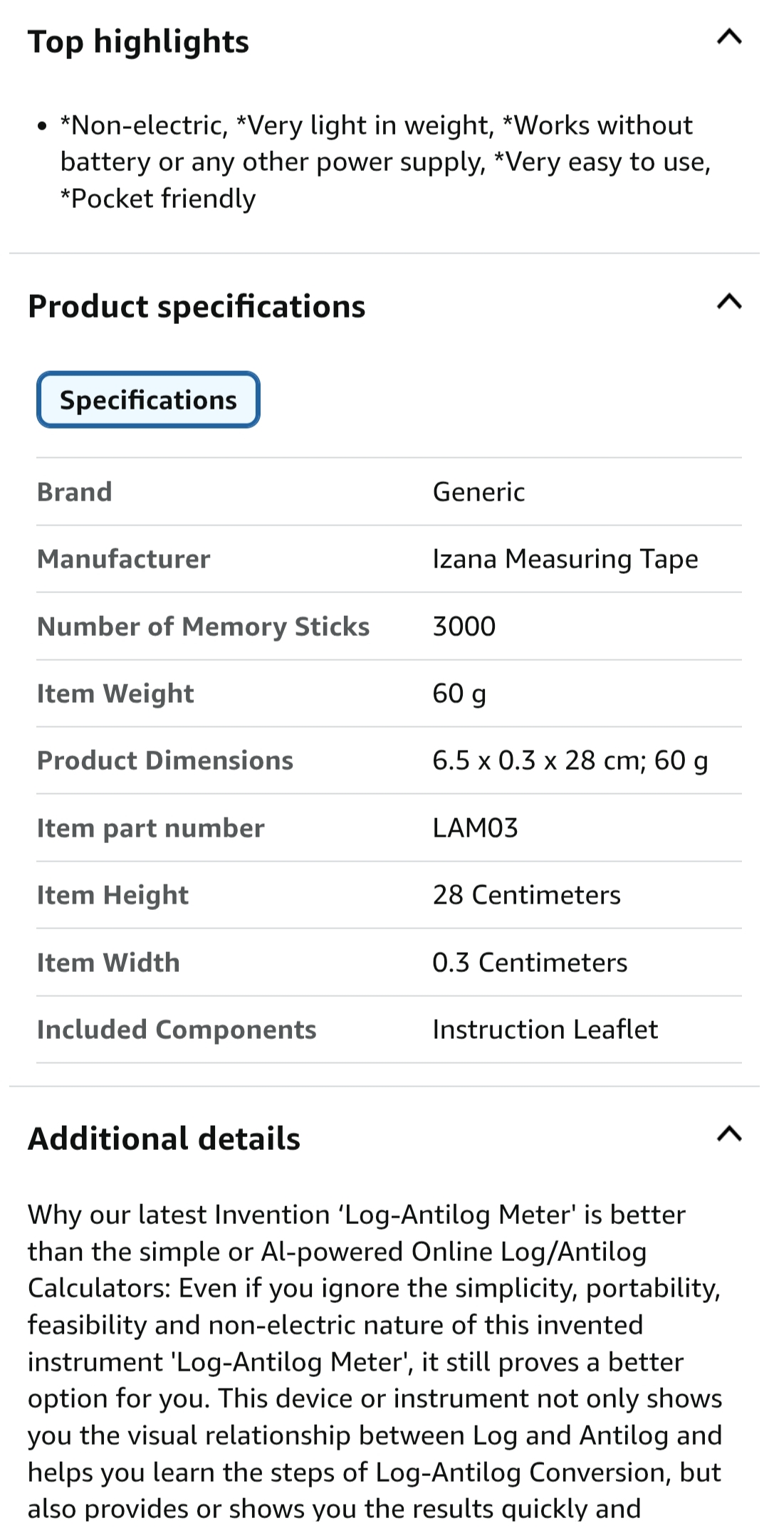 Log-Antilog Meter in Amazon stores